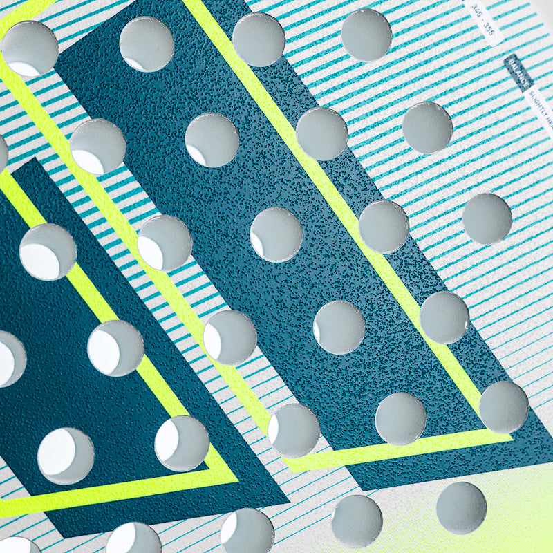 Sandpapiroverflade for ekstra spin og kontrol.